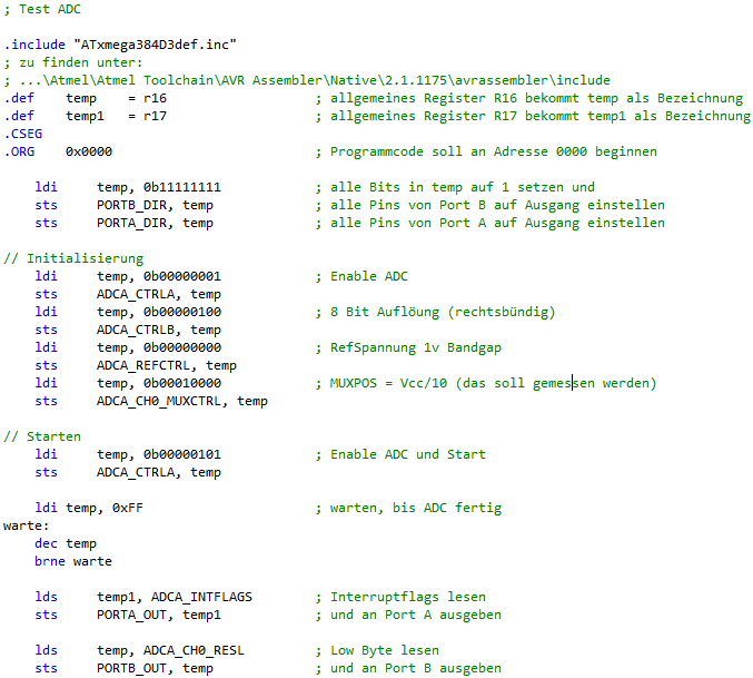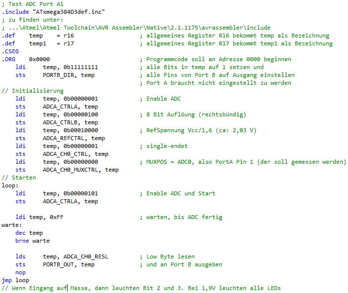 Codebeispiel ADC Port A Pin 1