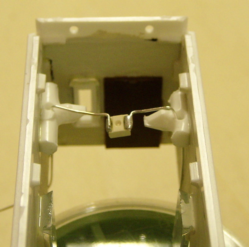 Nachdem die Drähte angelötet und die Lampenhalter angeklebt sind, kann die Innenbeleuchtung schon montiert werden.